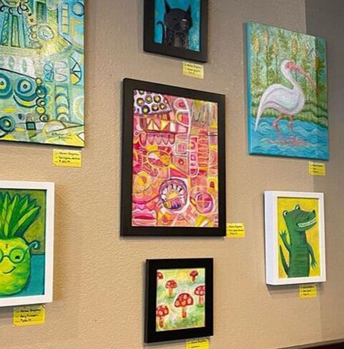 acrylic paint and mixed media on stretched canvas