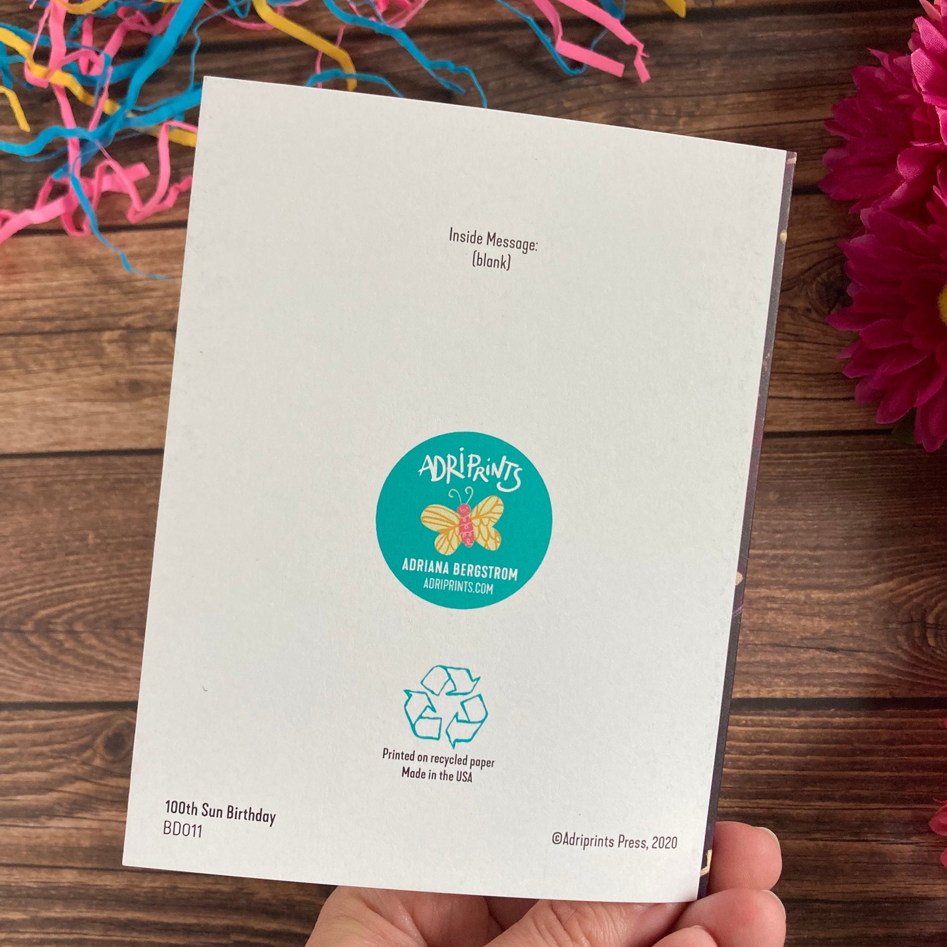 Celebrate one hundred years and wish a happy birthday to the fabulous centenarian in your life with this eco-friendly notecard featuring art by Adriana Hernandez Bergstrom.