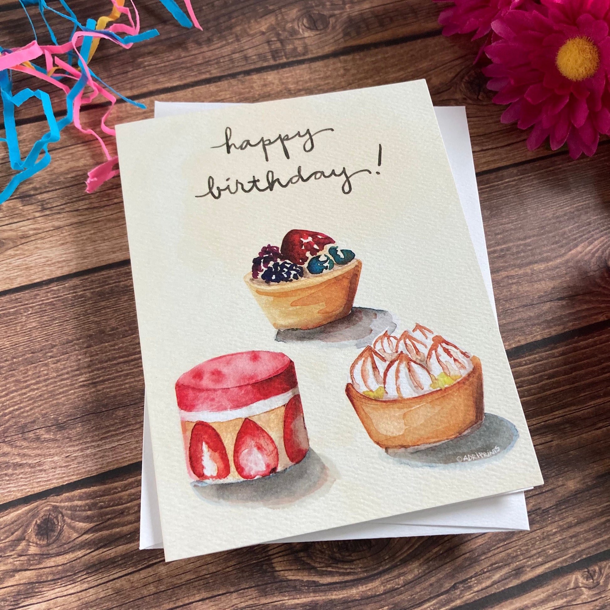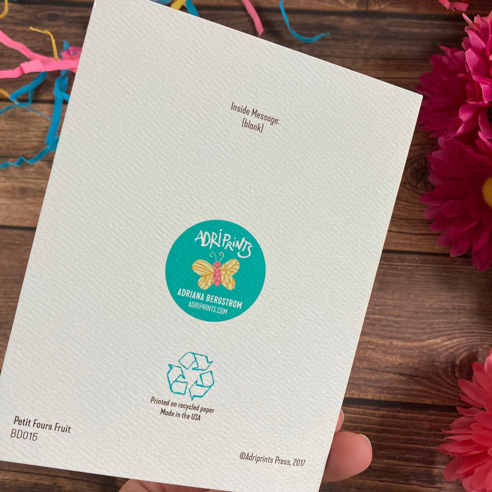 BIRTHDAY - Fruit Tarts Petit Fours Birthday card - watercolor art by Adriana Bergstrom