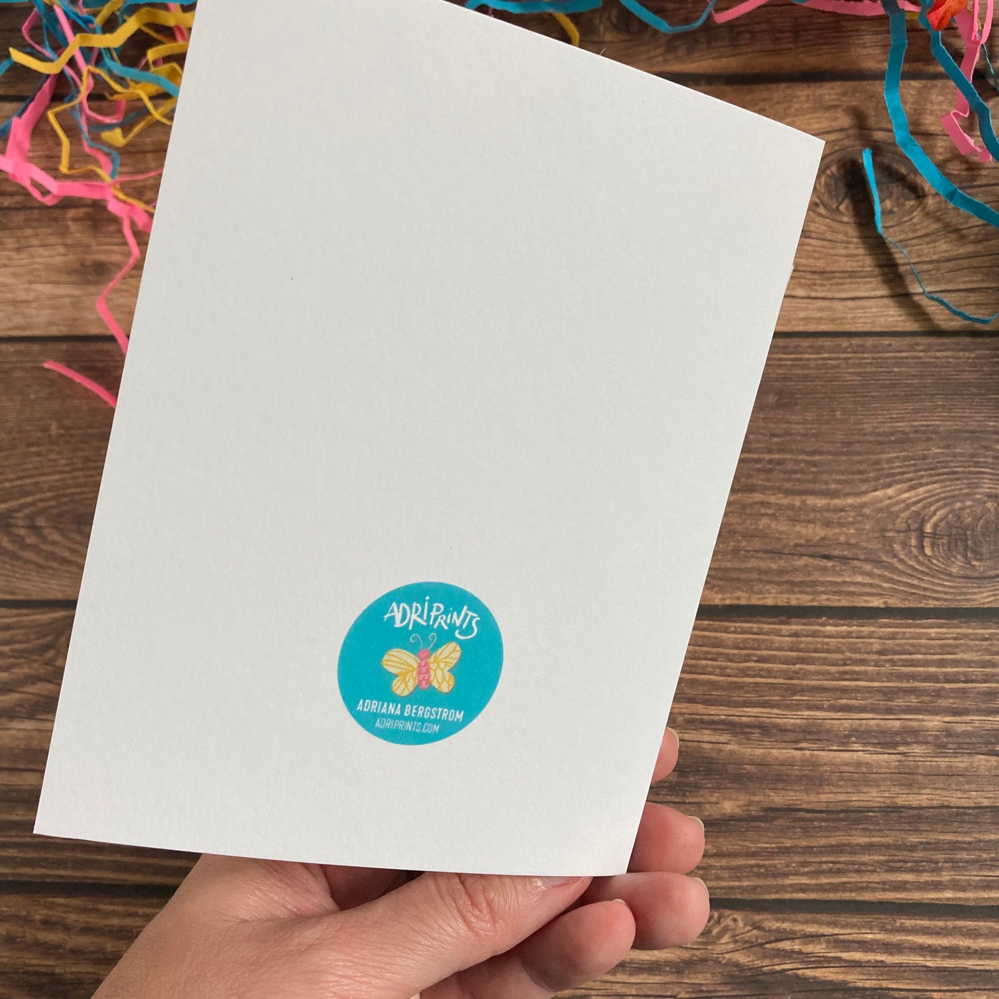 Wish someone a happy day and celebrate another year with this thoughtful eco-friendly notecard featuring art by Adriana Hernandez Bergstrom.