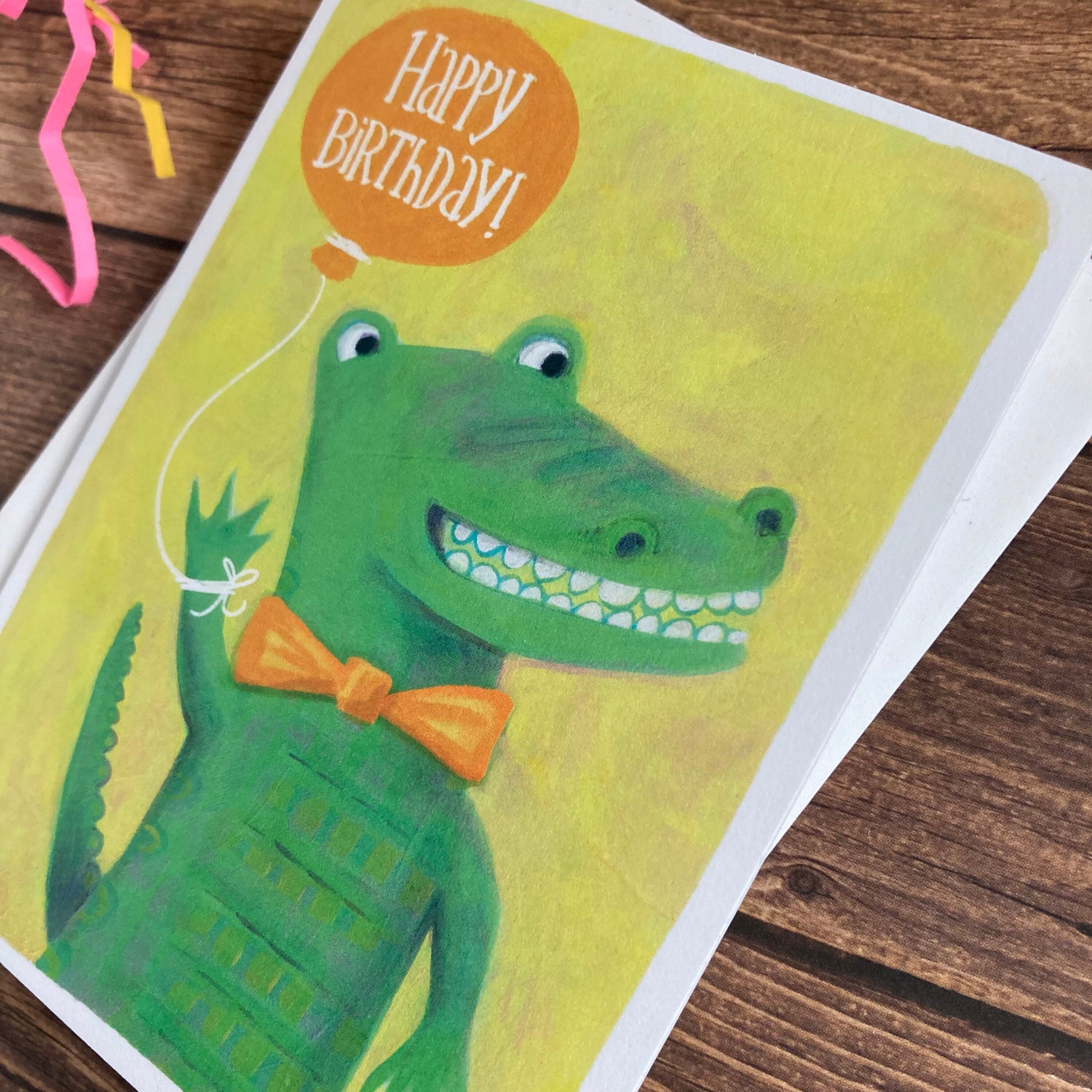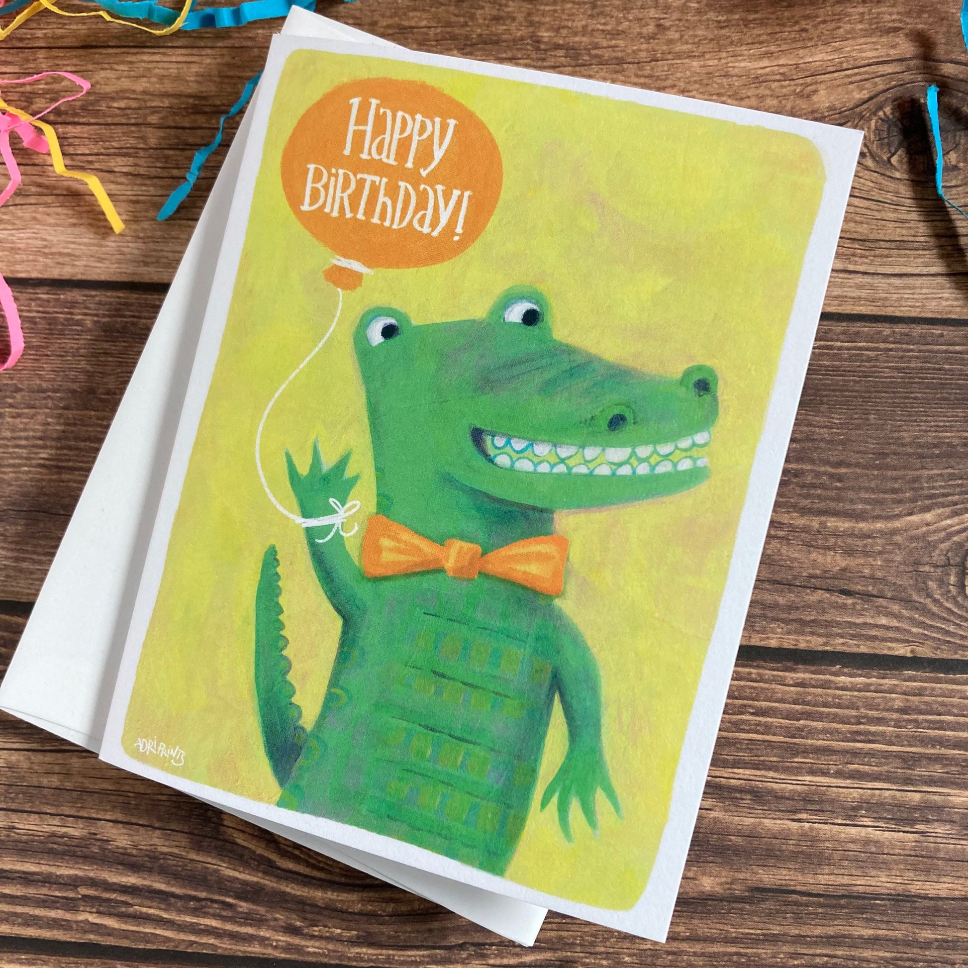 BIRTHDAY - Gator Crocodile Birthday Card, art by Adriana Bergstrom (Adriprints)