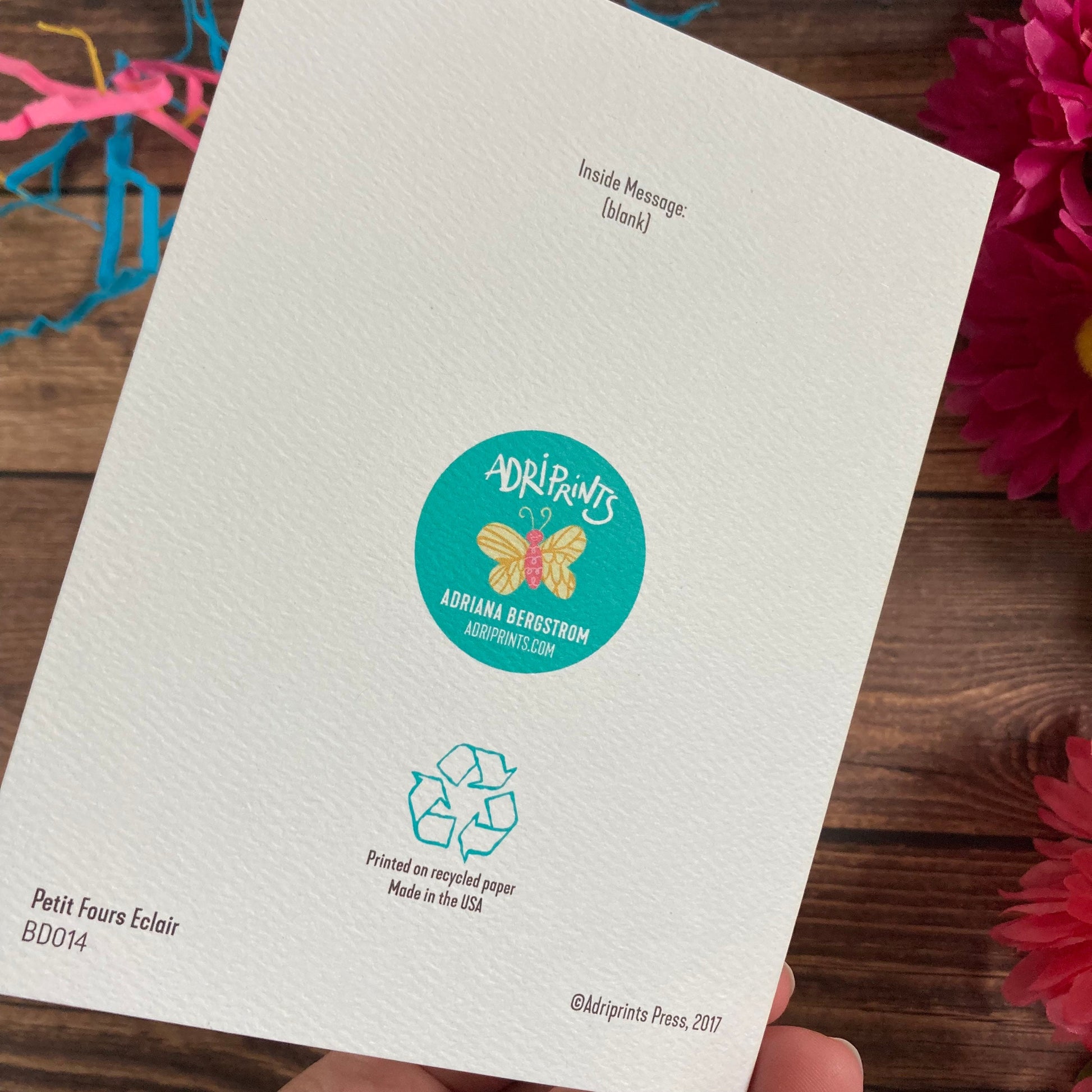 BIRTHDAY - Petit Fours Chocolate Eclair Birthday card - watercolor art by Adriana Bergstrom