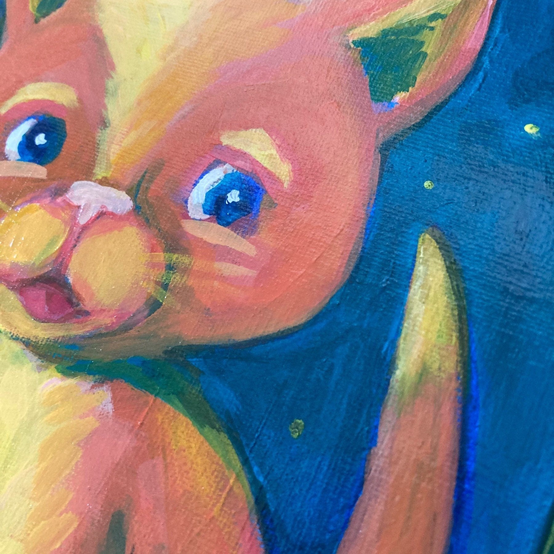 "Cat and the Moon" measures 8" x 8", and was painted in high-quality acrylic paints on canvas board. It's an original painting by Adriana Bergstrom (adriprints).