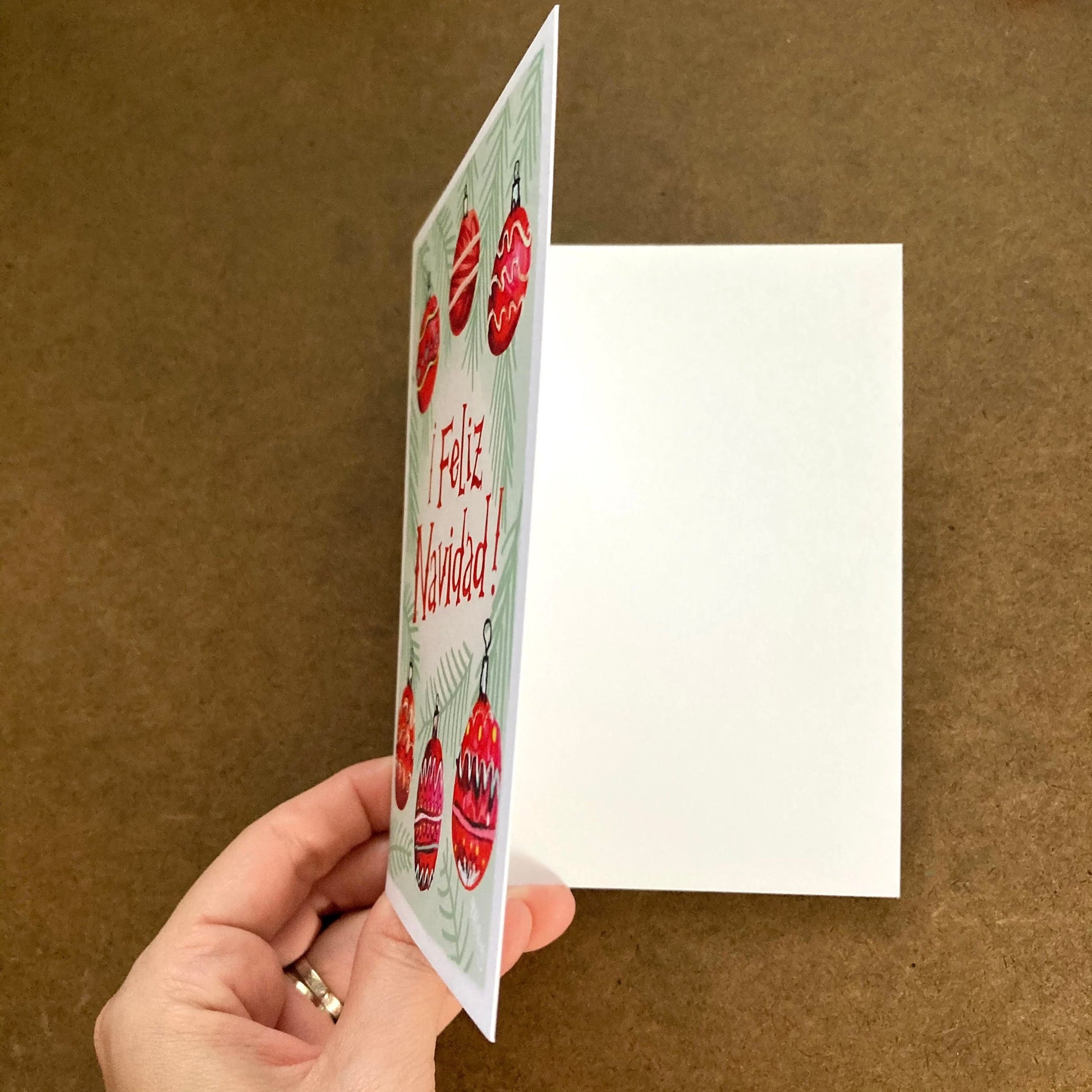 HOLIDAY Feliz Navidad Ornaments eco-friendly 10 pack card set, art by Adriana Bergstrom