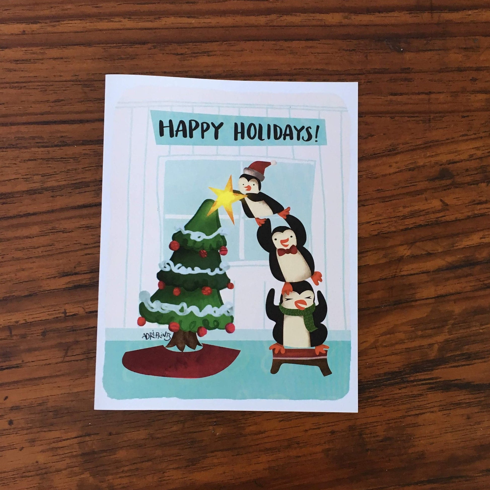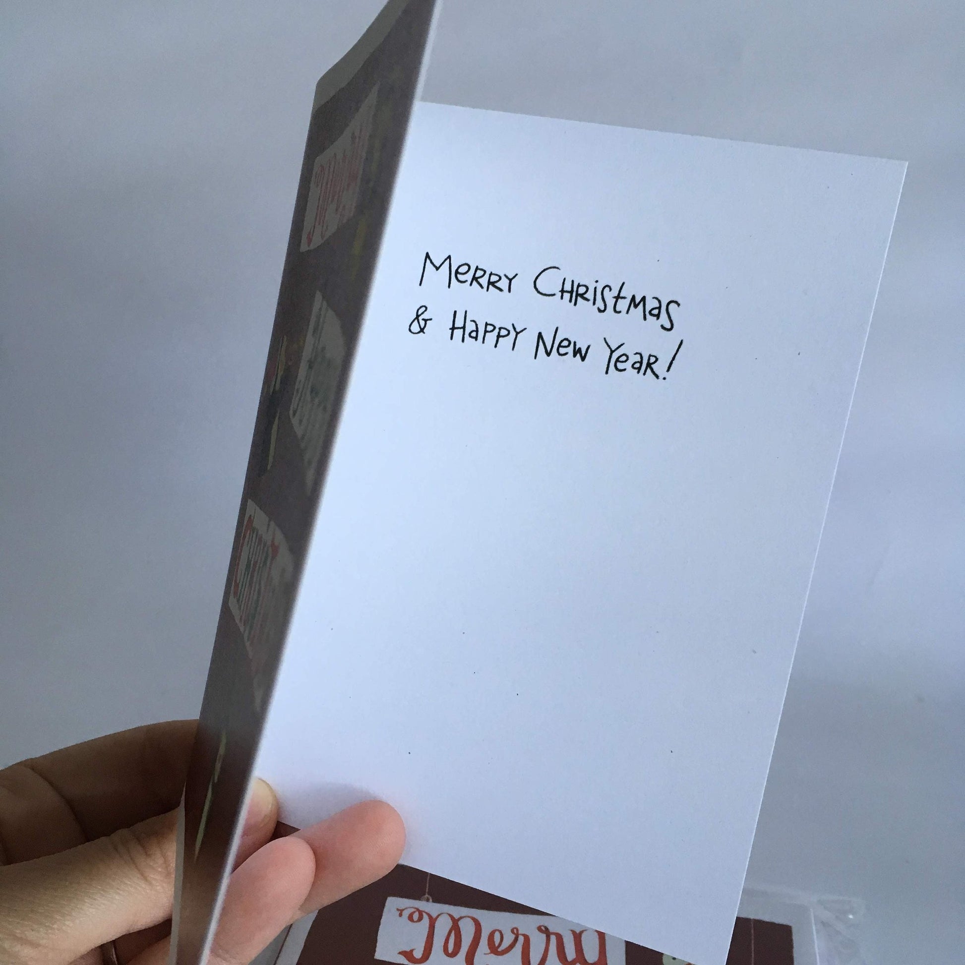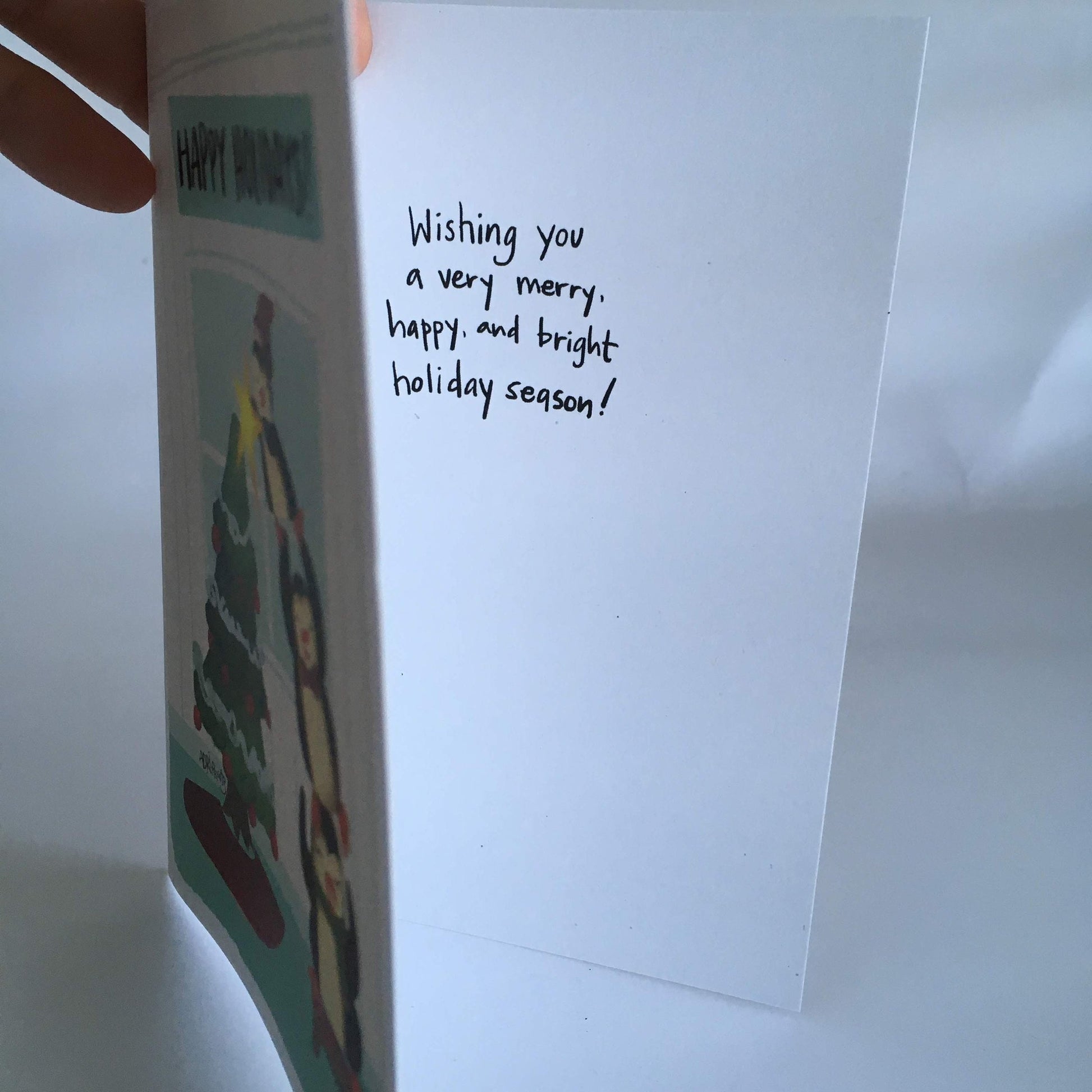 All cards feature cheerful holiday greeting card images on the cover and have a greeting inside.