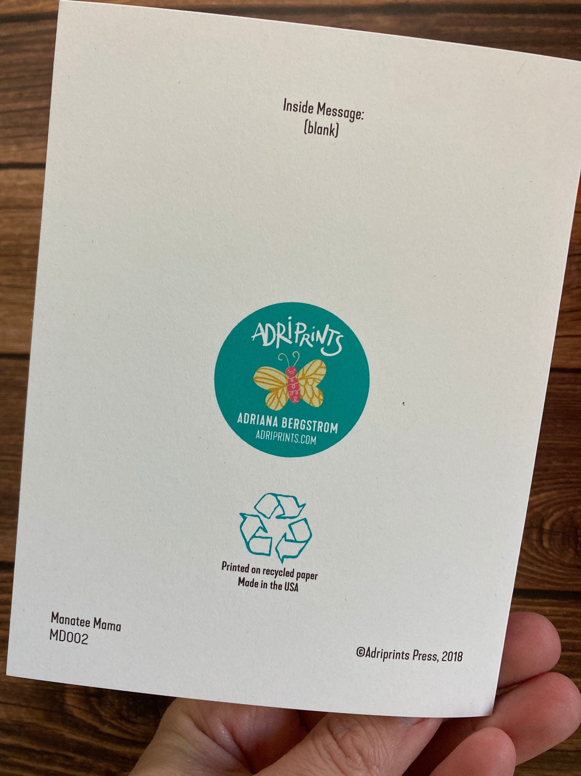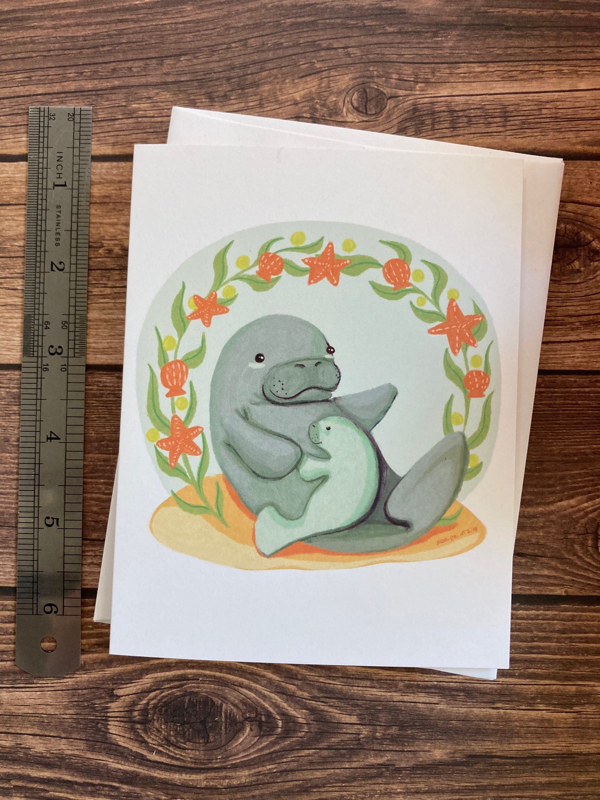 Manatee Mama greeting card featuring art by Adriana Hernandez Bergstrom.