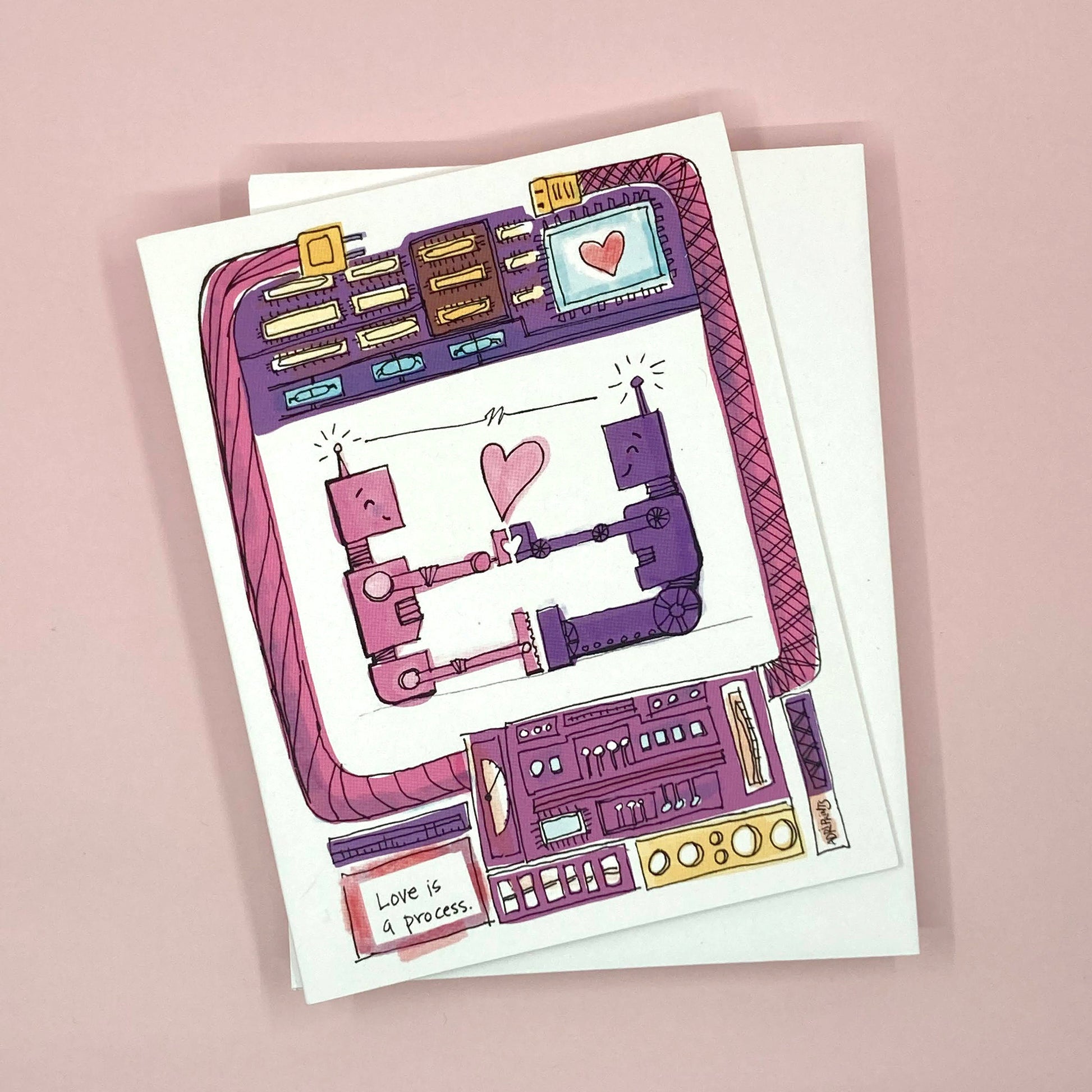LOVE - Robots Connection - Greeting Card for Them, Anniversary, Valentine's Day, eco-friendly notecards by Adriana Bergstrom (Adriprints)