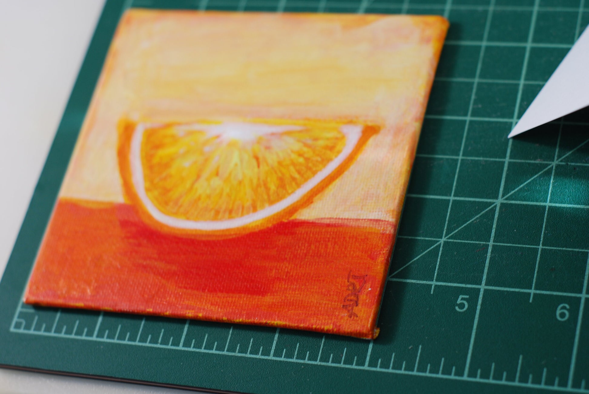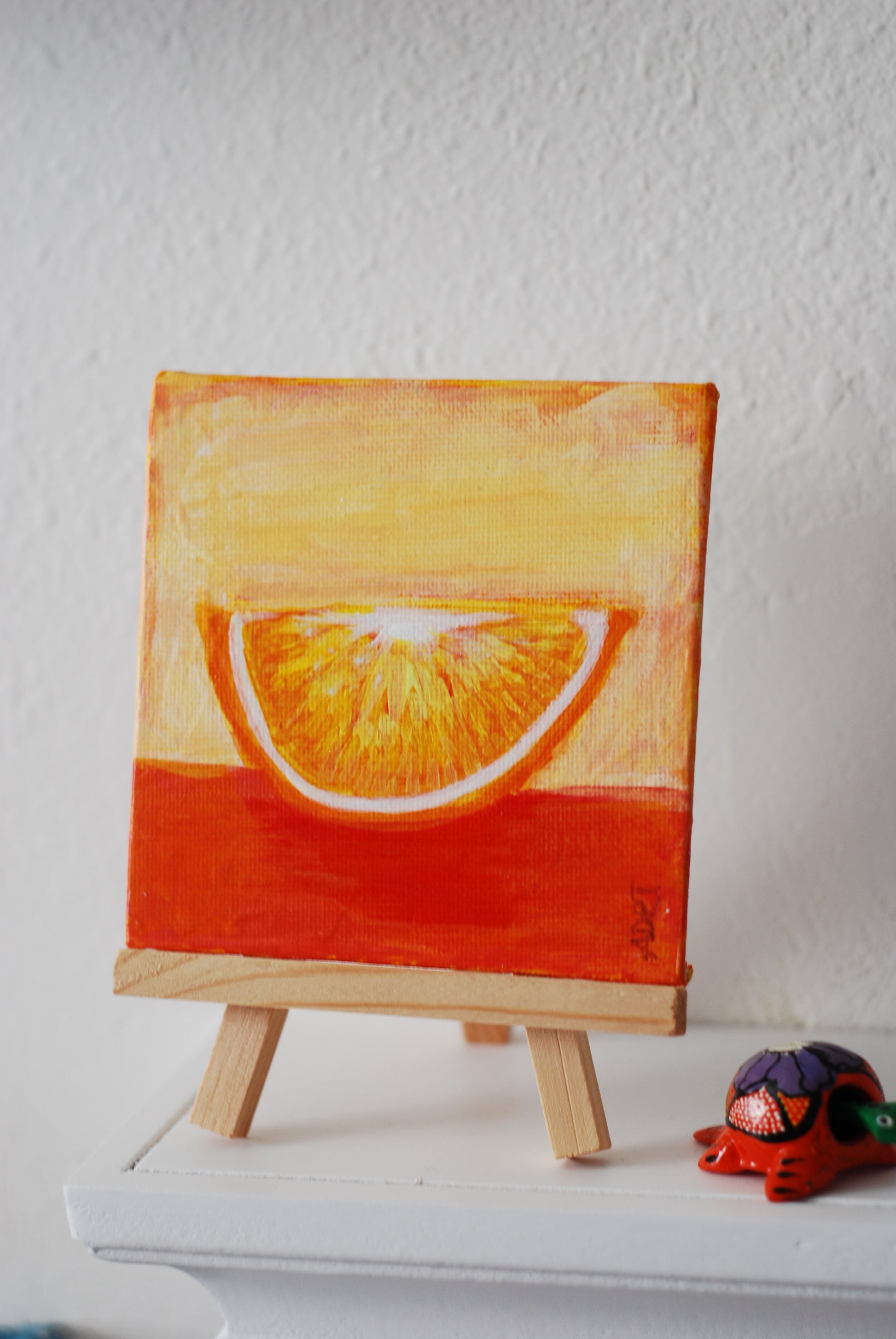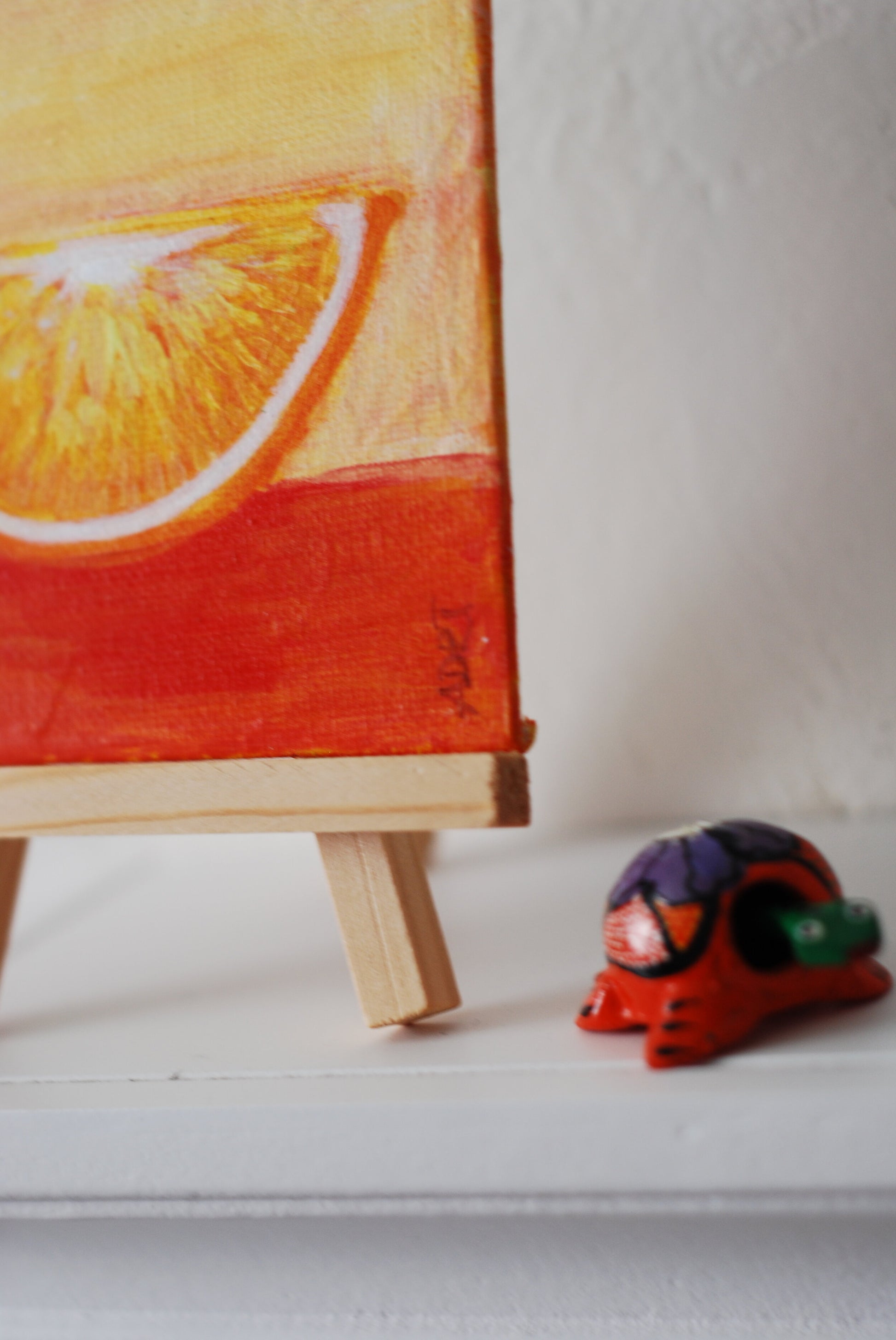 Orange Wedge miniature original 4" / 10cm acrylic painting by Adriana Bergstrom (Adriprints)