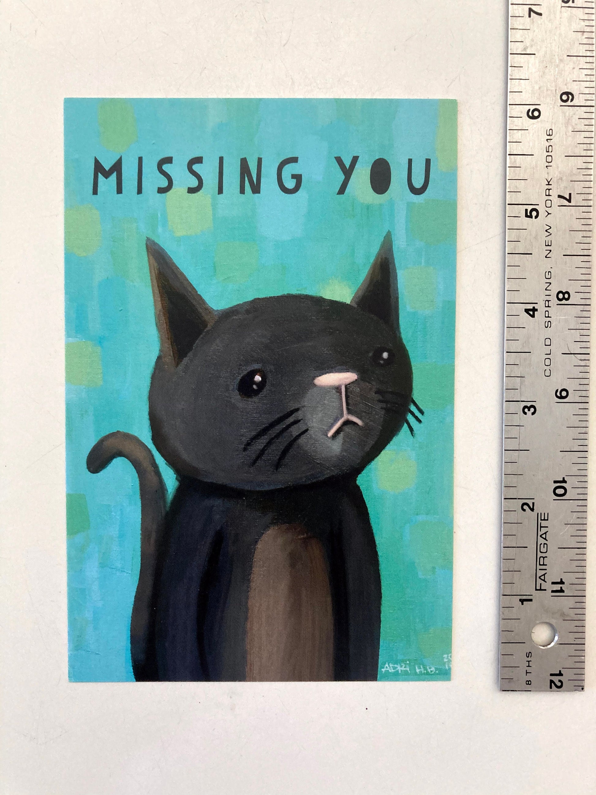 Miss You Wistful Cat postcard, 10 pack of postcards, art by Adriana Bergstrom, adriprints