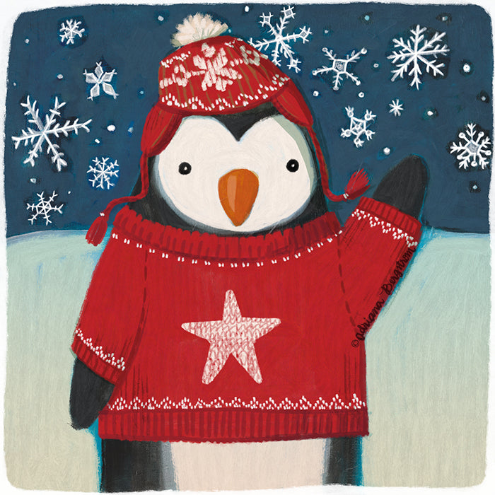 Penguin in desolate snow with snowflakes, originally painted in 2018