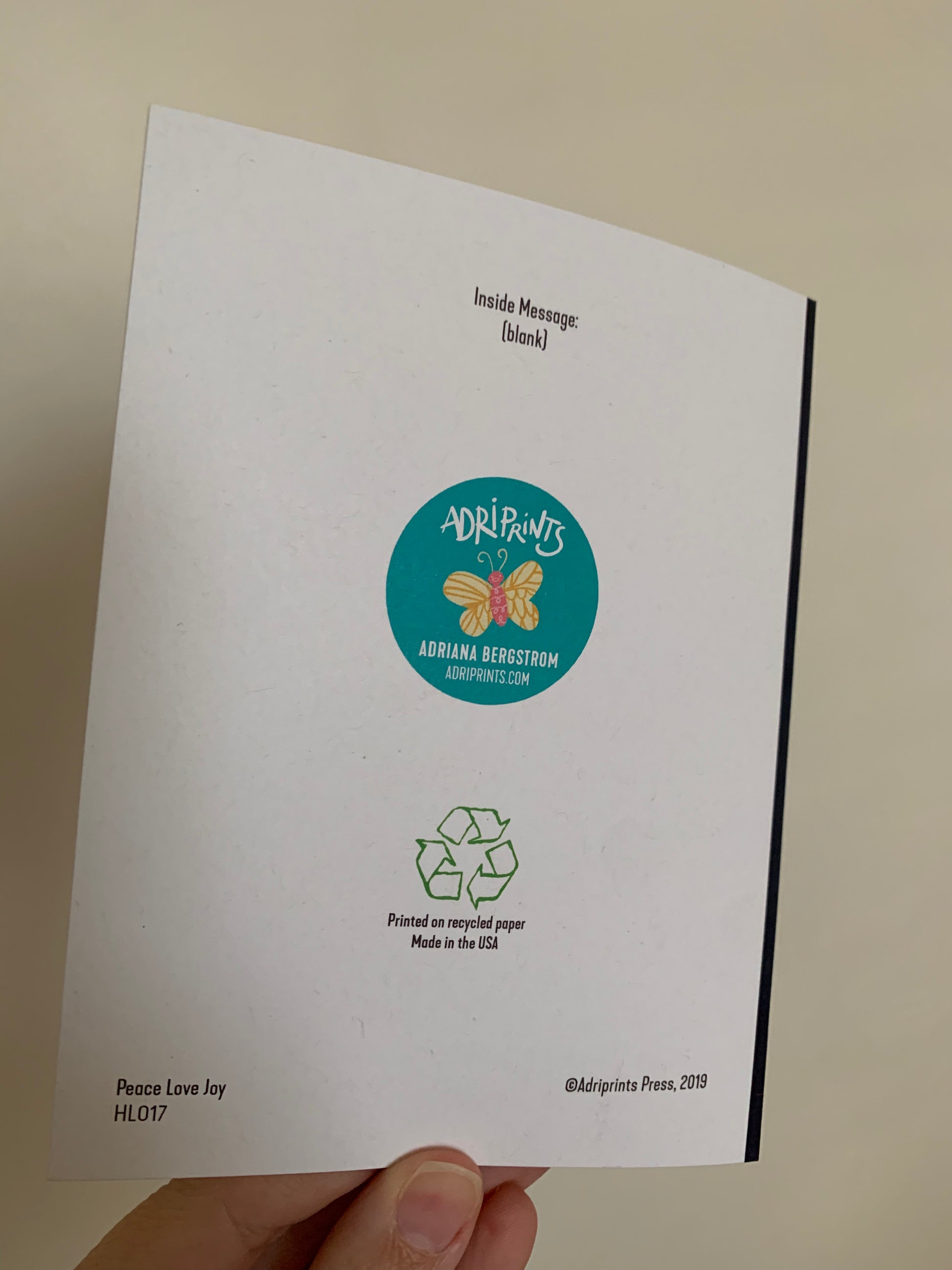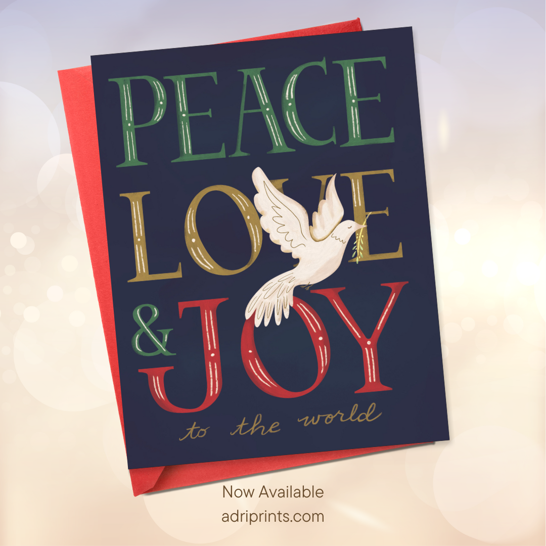 Peace Love and JOY, holiday card set, art by Adriana Bergstrom