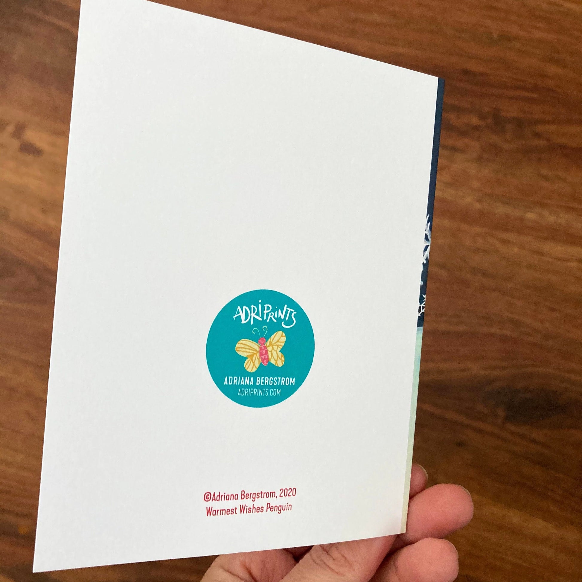 Penguin Warm Wishes, eco-friendly greetings, boxed 10 pack card set, art by Adriana Bergstrom