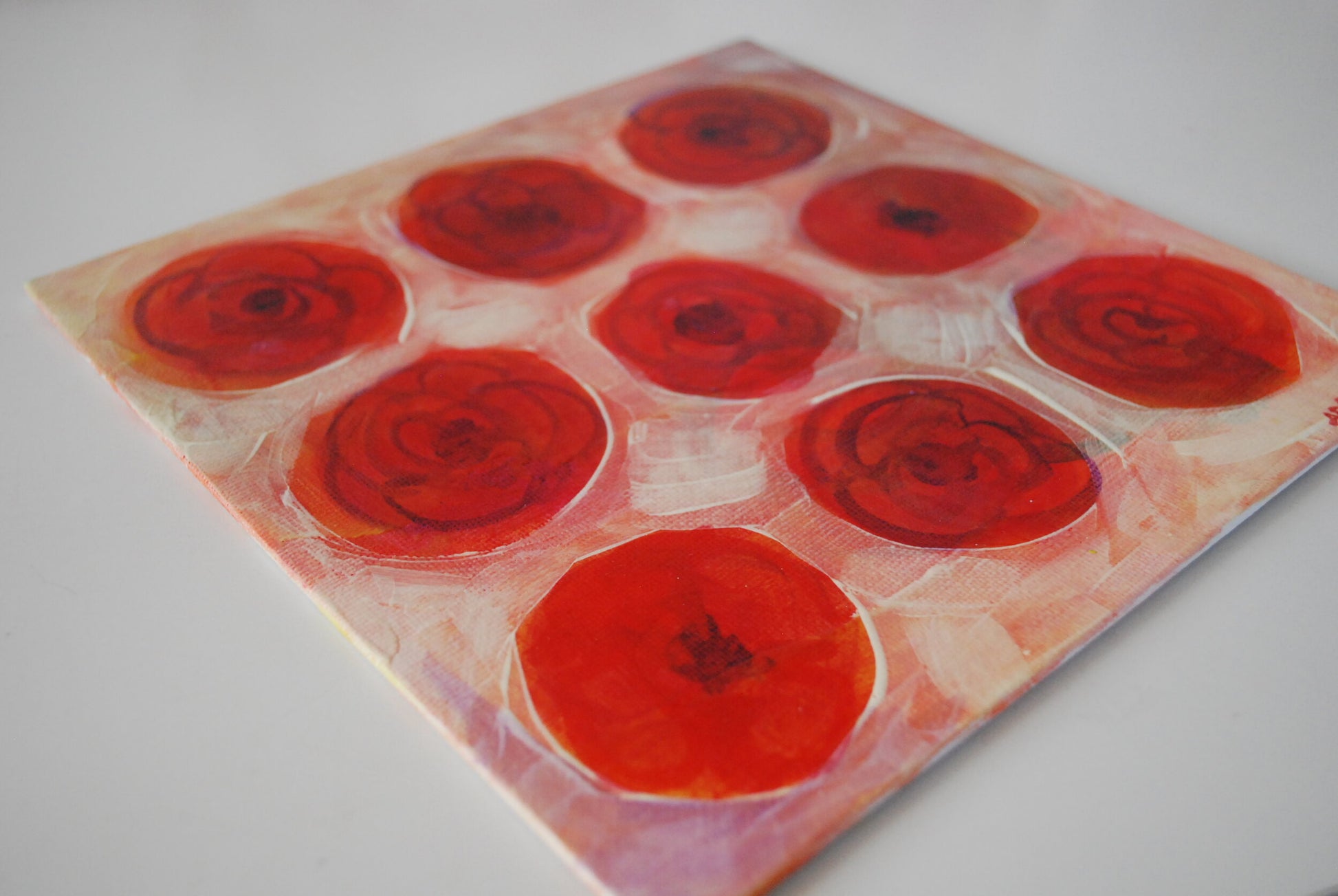 Poppies n Roses Painting on canvas board. Stylized poppies and roses in reds.