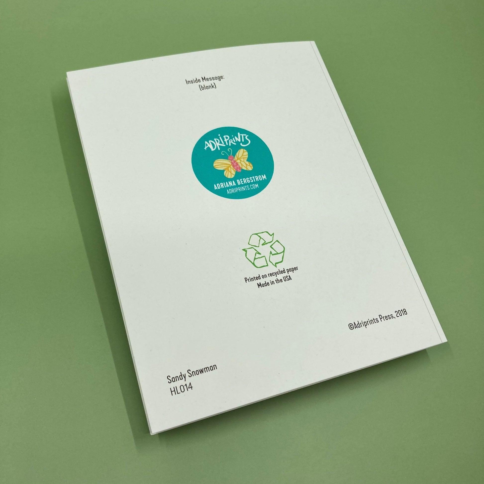 Sandy Snowman Greetings from Paradise, eco-friendly boxed cards 10 pack, art by Adriana Bergstrom