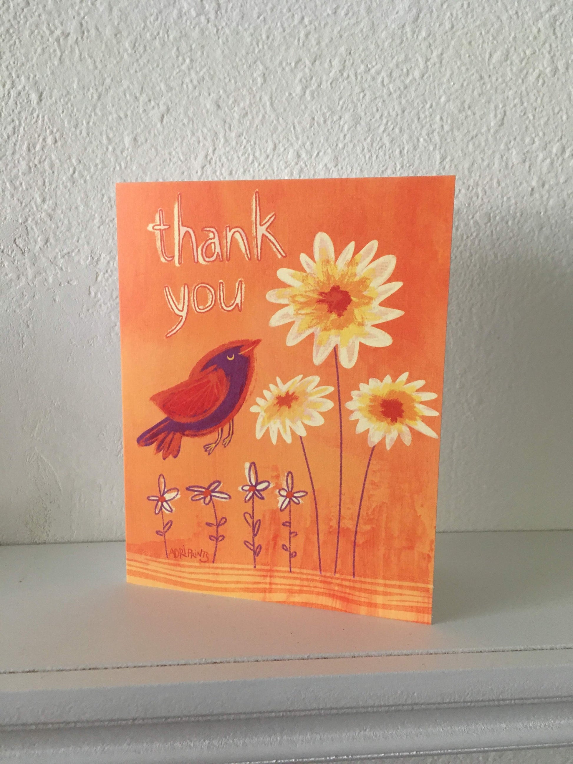 THANKS - Sunflower and Bird Thank You Card with envelope, appreciation, gratitude, stationery, art by Adriana Bergstrom (Adriprints)